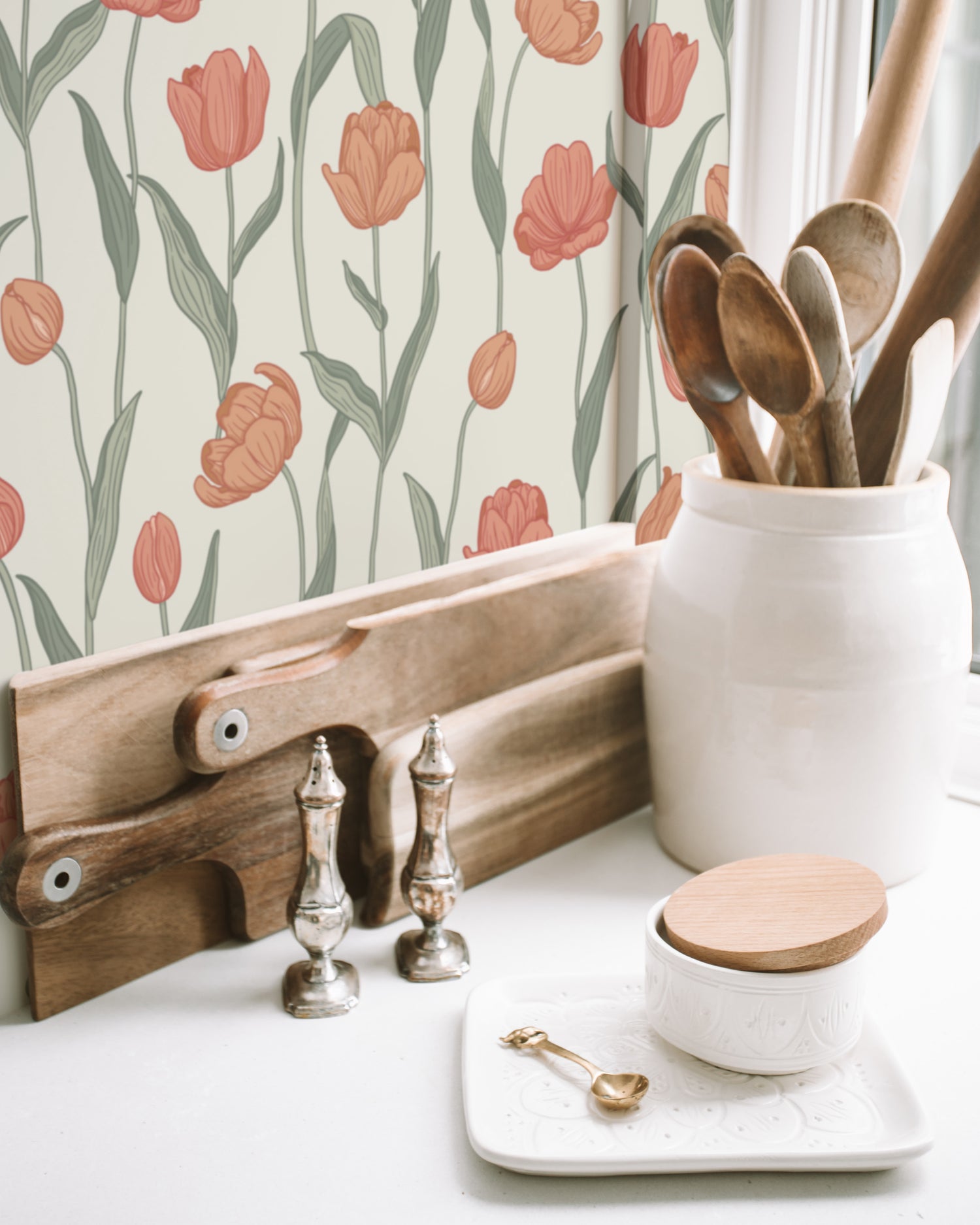 Bring the essence of Amsterdam’s iconic tulip fields into your home with the Summer Gray Wallpaper - Fjädra. This hand-painted design captures the delicate beauty of springtime tulips in a soothing pastel palette, creating a serene and inviting atmosphere. Perfect for adding a touch of elegance and seasonal charm to any room.