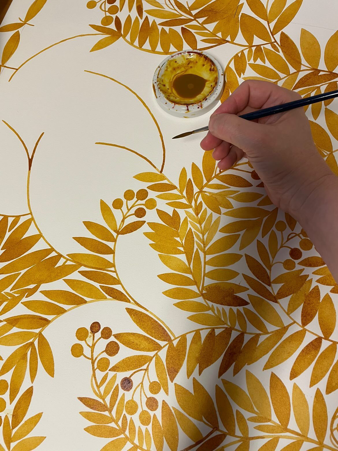 Het prachtige behang van Secret Garden is met de hand getekend door de Zweedse kunstenaar en ontwerpster Cecilia Pettersson. Cecilia begon het proces met verf en papier, voordat ze haar creaties digitaliseerde, de details ontwikkelde en de patronen in de loop van de tijd evolueerde tot wat je nu ziet.