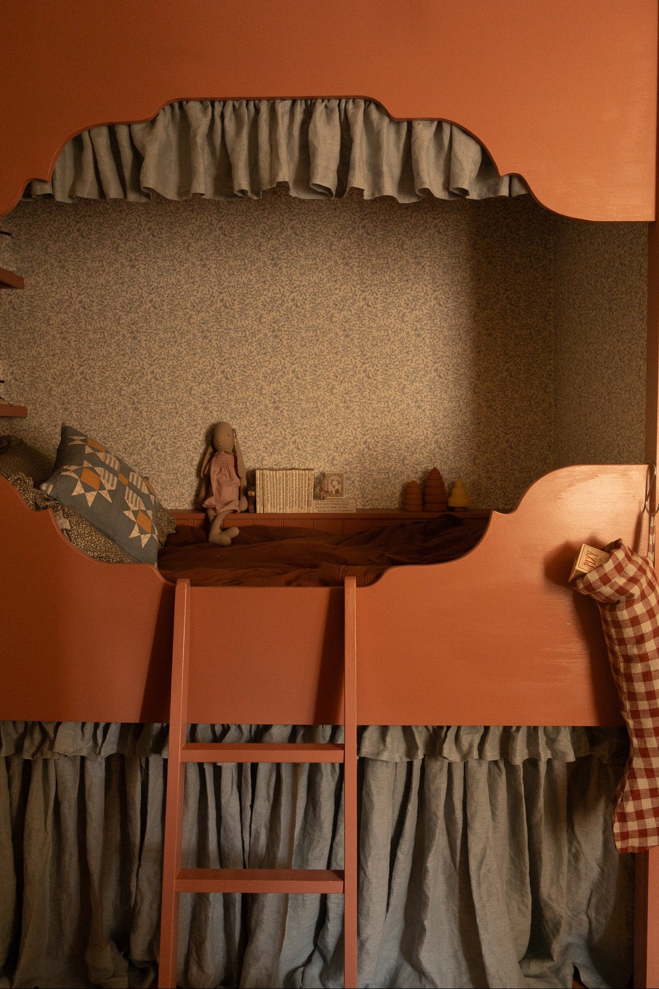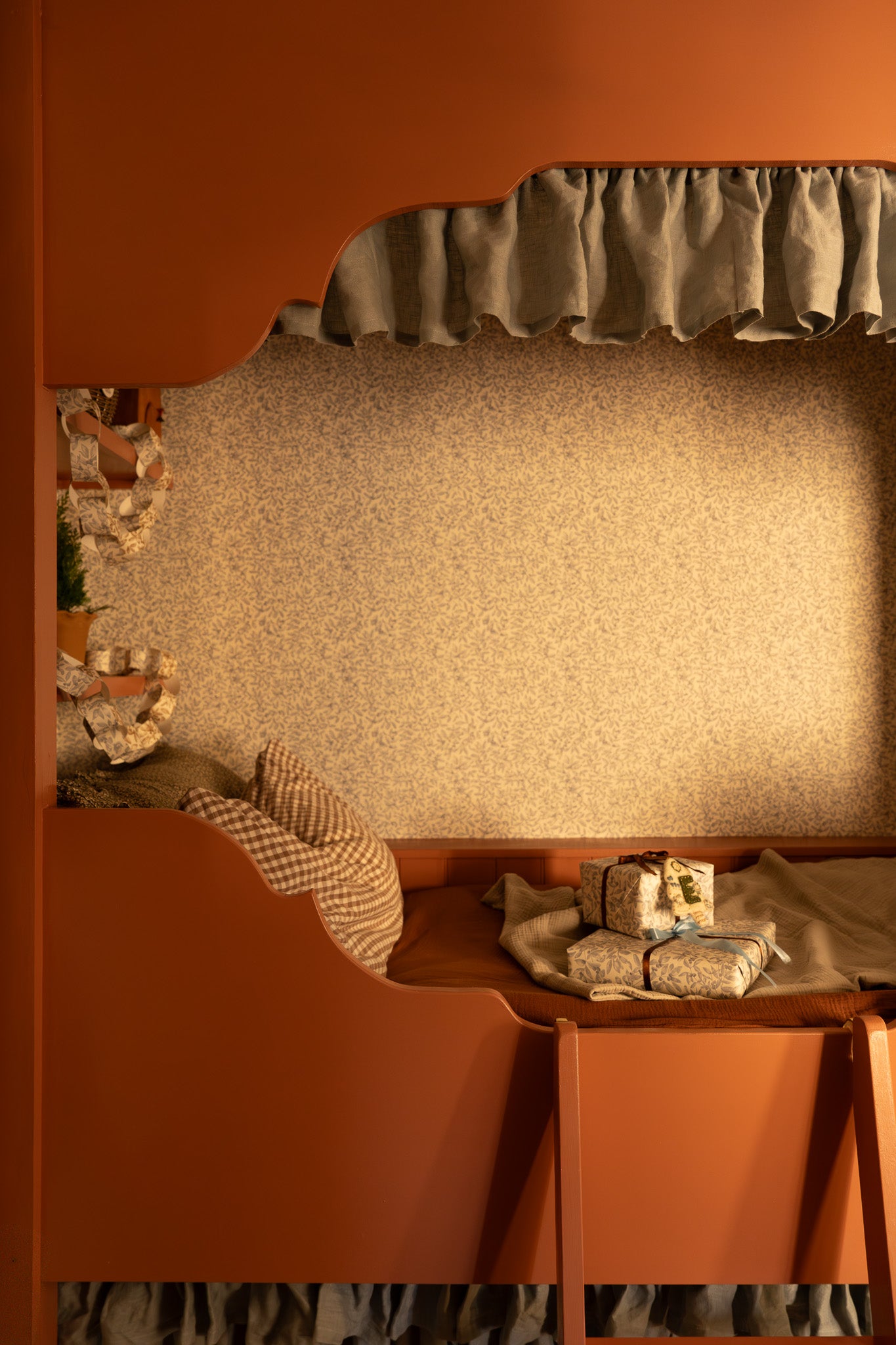 Een delicate wirwar van bladeren en trossen bessen verweven zich tot het ingewikkelde en overvloedige ontwerp van Junia behang. Dit met de hand getekende patroon vangt de ongetemde charme van een verborgen tuin en nodigt de stille schoonheid naar binnen uit.