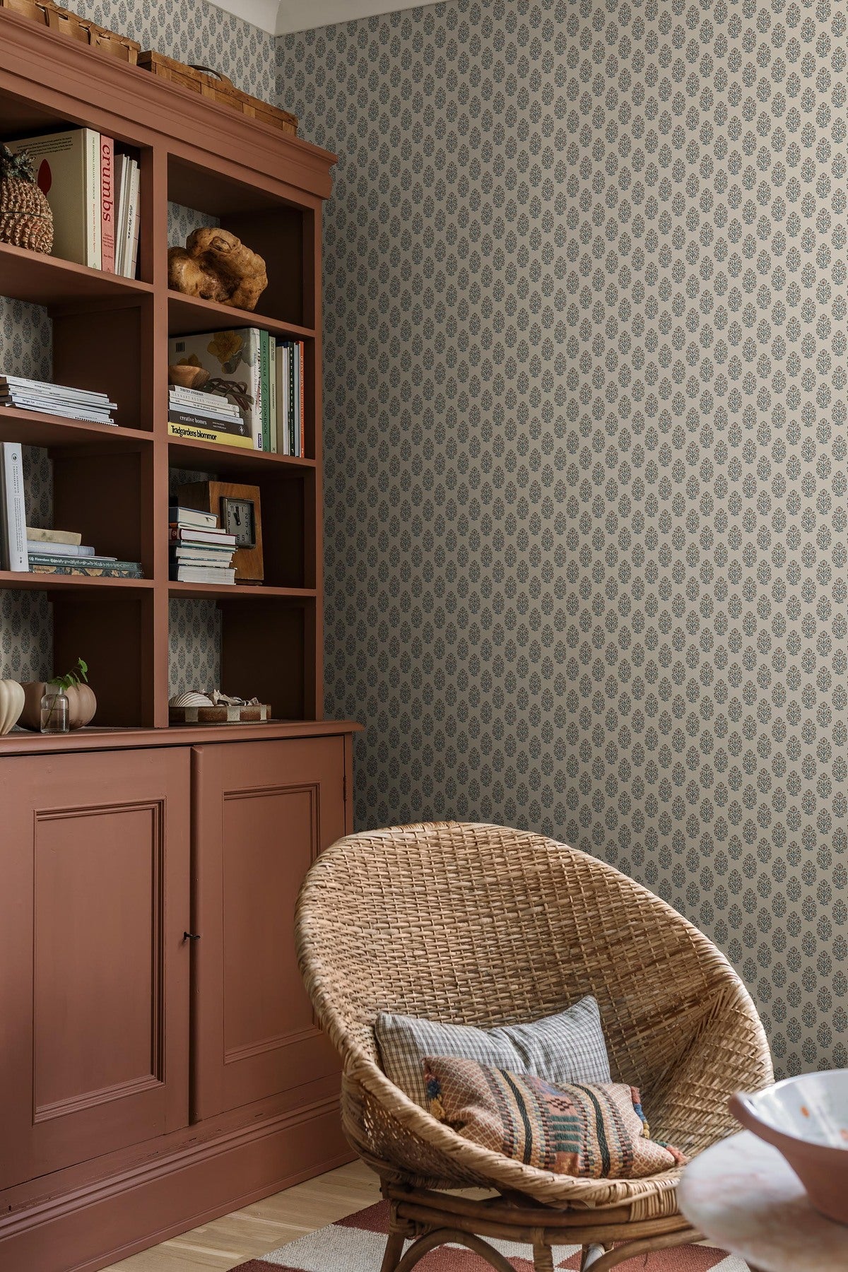 Zaprojktowany przez Jenny Hahne Gadd, wzór nawiązuje do uroku tradycyjnych kwiatów drukowanych blokowo, jednocześnie będąc świeżym i nowoczesnym. Powieś tę tapetę, aby wprowadzić do swojego domu lekką, subtelnie dekoracyjną atmosferę, dodając bezwysiłkowej elegancji z delikatnym, inspirowanym naturą akcentem.