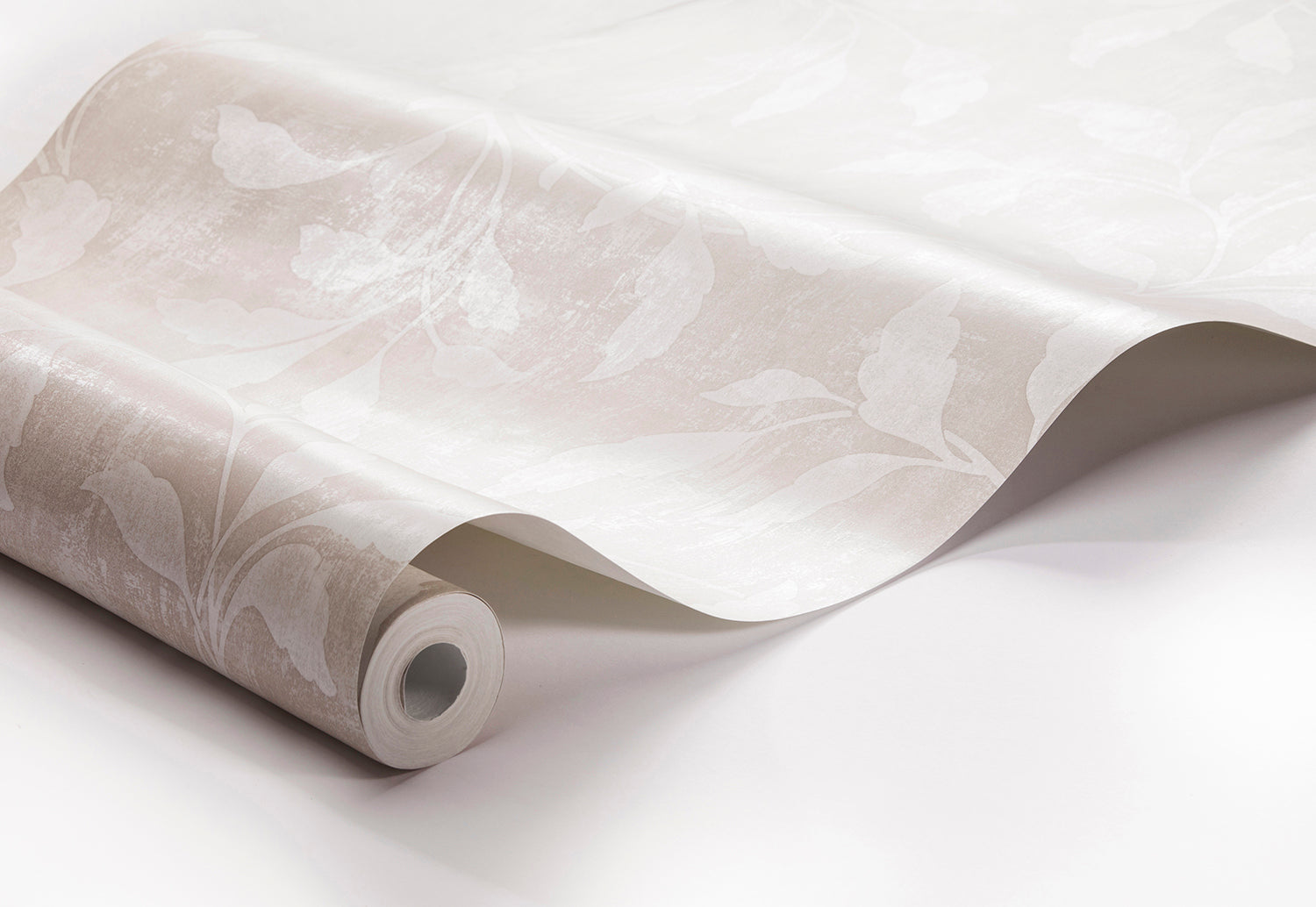 Rosewood Night ist eine großflächig gemusterte Tapete mit schimmerndem Blattwerk aus orientalischem Palisander. Früher wurde im Fernen Osten oft Palisanderholz verwendet, heute stehen die Bäume unter Naturschutz. Hier sehen Sie die stilisierten Blätter der Bäume in Silberweiß auf einer beigen, seidenartigen Unterseite. Eine ruhige, luxuriöse Tapete für ein exklusives, persönliches Gefühl beispielsweise in Schlafzimmern, Wohnzimmern und Esszimmern. Rosewood Night ist in vier Farbschemata erhältlich, dieses ist eines der helleren.